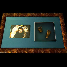 A child grows up in a blink of an eye. Capture these special moments by creating a memory you can touch for a lifetime by selecting 2 beautiful 2D or 3D sculptures which are created identically to your little one's hand/foot all the way down to the fingerprints. These sculptures comes in an elegant bright white stone and are sealed and protected in a clear glossy finish and displayed in one of our custom double window frames (available in many styles & colors). Our sculptures can be customized with optional metallic finishes and engravings. Special requests can be discussed during our visit.